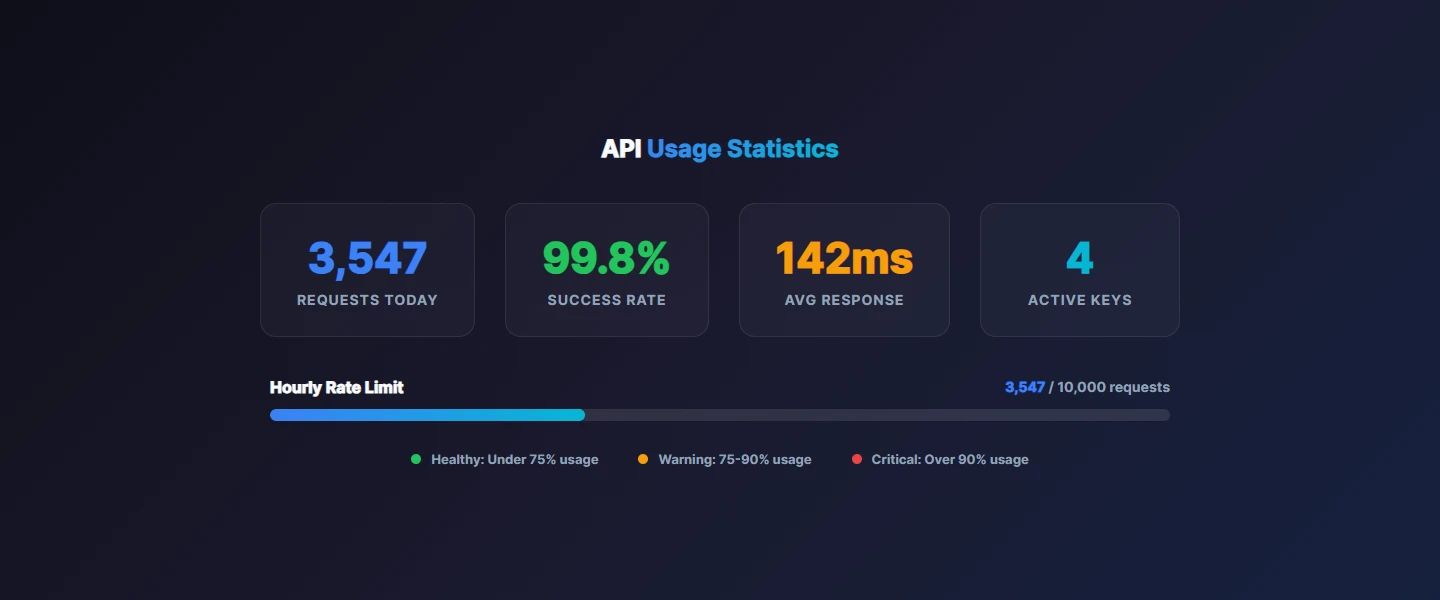 | Logging | Log request counts and error rates | Log full API keys (even masked, patterns can leak) |