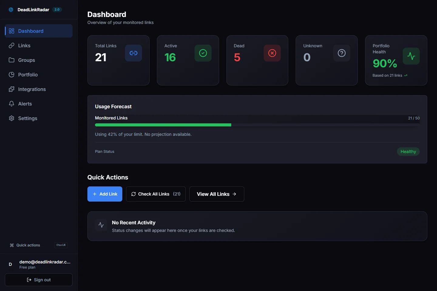 Questions or feedback? Reach us at support@deadlinkradar.com.