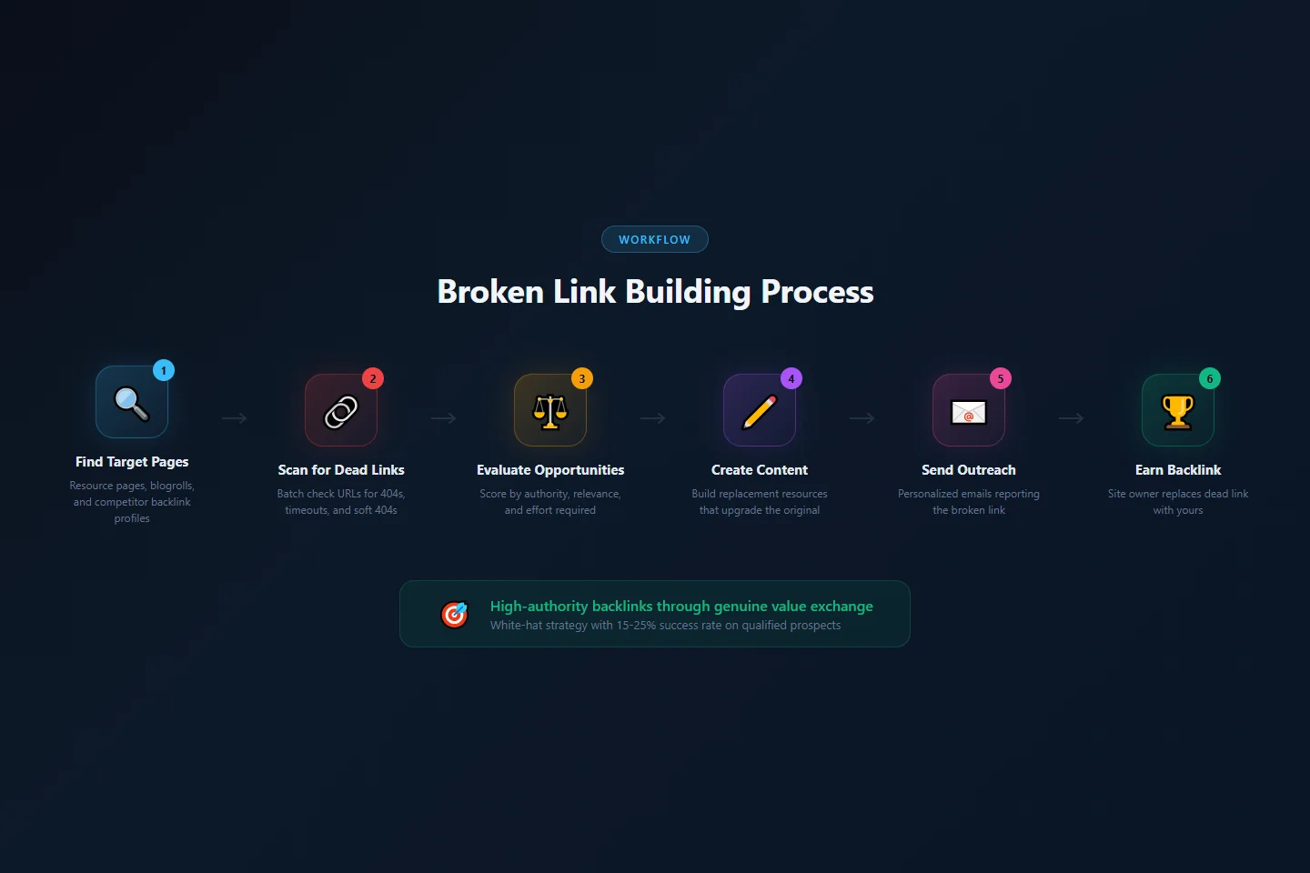The "10x replacement" mindset: If the original broken page had 500 words on the topic, aim for 1,500-2,000 words with visual aids. If it had basic coverage, add advanced tactics. Make the site owner feel like they're upgrading their resource page by linking to you.