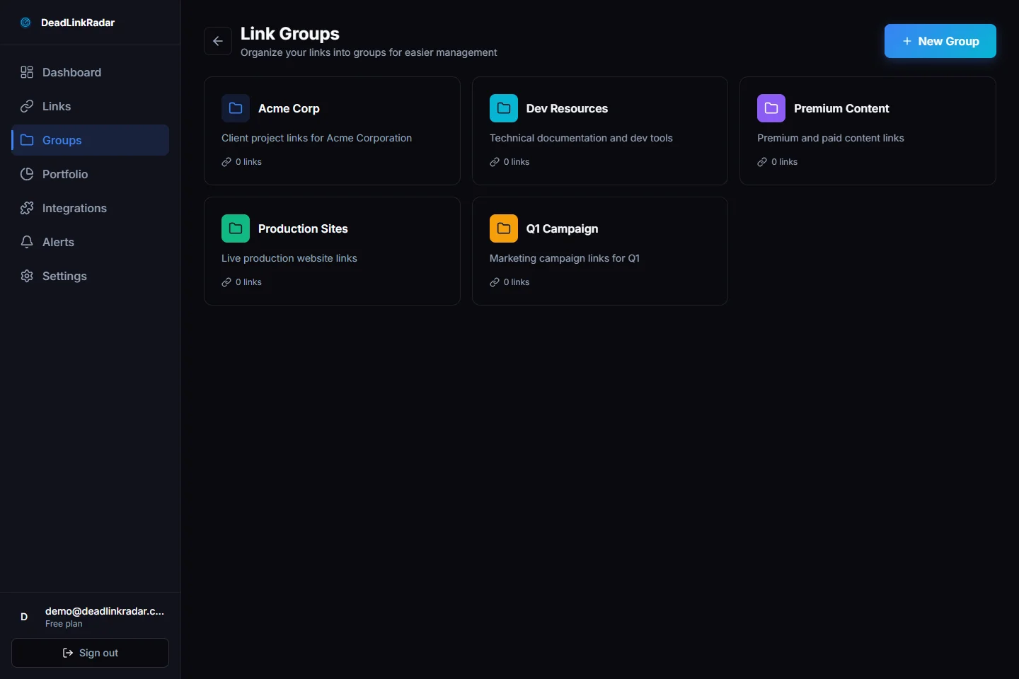 Ready to organize your links? Head to your DeadLinkRadar dashboard and create your first group. If you need help setting up an organization strategy for your specific use case, reach out to us at support@deadlinkradar.com.