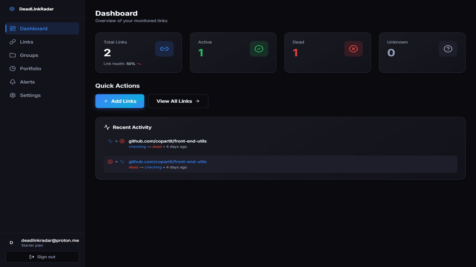 DeadLinkRadar is an AI-powered broken link checker built for content creators, bloggers, and documentation teams. It detects soft-404s, login walls, and intermittent failures that other tools miss — protecting your SEO rankings and reader experience. Monitor unlimited URLs with real-time alerts, AI confidence scoring, and support for 38+ cloud and file hosting platforms.